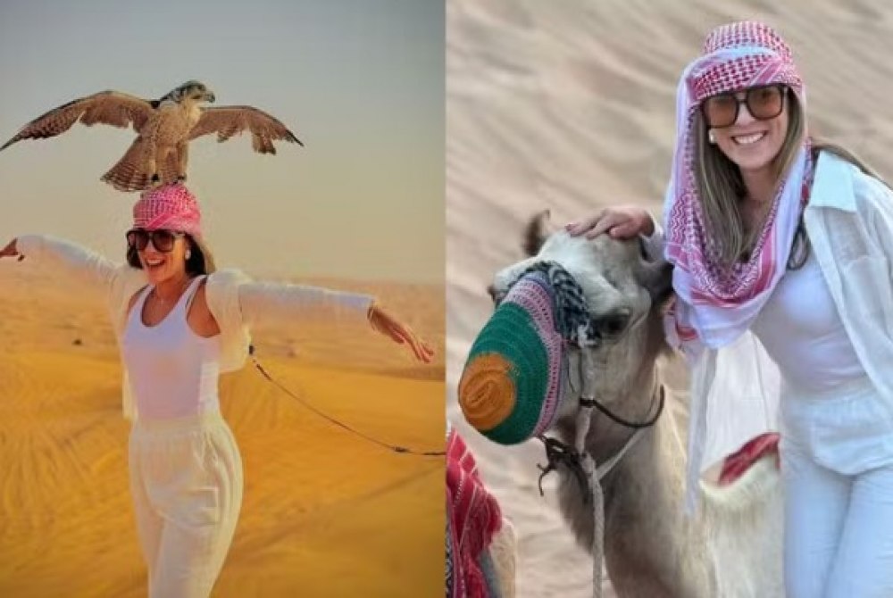 Um dos momentos de tensão vividos por Nayllane em Dubai foi quando ela avistou caças durante um passeio no deserto, no sábado (28).